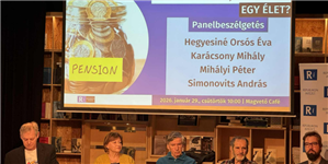This was followed by a panel discussion focusing on the problems of the pension system, current solutions to the pension system, loneliness, and the retirement age. The participants in the discussion were Éva Hegyesiné Orsós, social policy expert and president of the Nyugdíjas Klubok és Idősek „Életet az éveknek” Országos Szövetség; Mihály Karácsony, president of the Országos Nyugdíjas Parlament; Péter Mihályi, economist, university professor, corresponding member of MTA; and András Simonovits, mathematician, economist, and retired university professor.